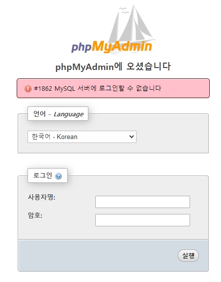#1862 MySQL 서버에 로그인할 수 없습니다