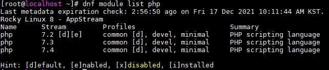 [root@localhost ~]# dnf module list php