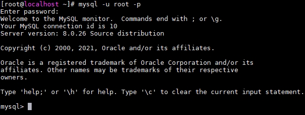 [root@localhost ~]# mysql -u root -p